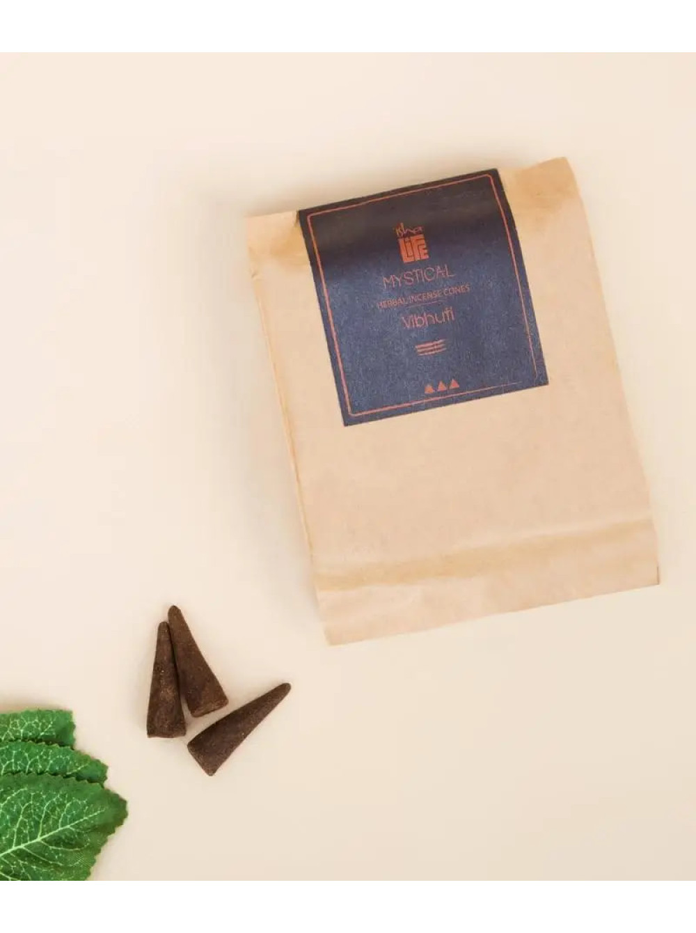Эти фирменные конусы "Вибхути" скручены вручную и изготовлены из полностью натуральных ингредиентов. В комплект входит глиняная подставка для устойчивости конусов. Вы можете использовать эти благовония для молитв в комнате для пуджи, во время медитации или просто для расслабления. Они помогут очистить воздух в помещении и создать подходящую атмосферу для восстановления и энергетической подпитки ума и тела.