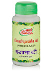Состав: Chandraprabha – Karpura – Camphor – Cinnamomum camphora, Vacha – Acorus calamus, Musta – Nut grass (root) – Cyperus rotundus, Bhunimba – The Creat (whole plant) – Andrographis paniculate, Amruta – Indian Tinospora (stem) – Tinospora cordifolia, Daruka – Himalayan cedar (bark) – Cedrus deodara, Haridra – Turmeric rhizome – Curcuma longa, Ativisha – Aconitum heterophyllum, Darvi – Tree Turmeric (stem) – Berberis aristata, Pippalimoola – Long pepper root – Piper longum, Chitraka – Lead Wort (root) – Plumbago zeylanica, Dhanyaka – Coriander – Coriandrum sativum, Haritaki – Chebulic Myrobalan fruit rind – Terminalia chebula, Vibhitaki – Belliric Myrobalan fruit rind – Terminalia bellirica, Amalaki – Indian gooseberry fruit – Emblica officinalis Gaertn, Chavya – Java Long Pepper – Piper chaba, Vidanga – False black pepper – Embelia ribes, Gajapippali – Java Long Pepper (fruit) – Piper chaba, Shunti – Ginger Rhizome – Zingiber officinalis, Maricha – Black pepper – Piper nigrum, Pippali – Long pepper fruit – Piper longum, Makshika Dhatu Bhasma – Purified Copper Iron Sulphate, Yava Kshara – Kshara of Barley – Hordeum vulgare, Swarjika Kshara, Saindhava Lavana – Rock salt, Sauvarchala Lavana – Sochal salt, Vida Lavana – Vida salt, Trivrit – Operculina turpethum, Danti – Baliospermum montanum, Patra – Cinnamomum tamala, Twak – Cinnamon – Cinnamomum zeylanicum, Ela – Cardamom – Elettaria cardamomum, Vamshalochana – bambusa bambos, Loha Bhasma – Iron Bhasma, Sita – Sugar, Shilajatu – Asphaltum, Guggulu – Indian bedelium – Commiphora mukul.