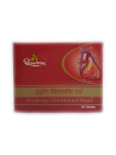 Состав: Bruhat Vata Chintamani Rasa – a traditional Ayurvedic Medicine – 10 mg, Akeeka Pishti – 30 mg, Abhraka Bhasma – Bhasma (calx) of Mica – 20 mg, Poornachandrodaya makardhwaja – 30 mg, Arjuna – Terminalia arjuna – bark – 20 mg, Jatamamsi rhizome– Nardostachys jatamansi – 20 mg, Manjishta (Rubia cordifolia) stem 20mg, Processed in Dashamoola (Agnimantha (Clerodendrum phlomidis) stem bark, Bilva (Aegle marmelos) stem bark, Gambhari (Gmelina arborea) stem bark, Shyonaka (Oroxylum indicum) stem bark, Bruhati (Solanum indicum) whole plant, Kantakari (Solanum xanthocarpum) whole plant, Shalaparni (Desmodium gangeticum) whole plant, Gokshura (Tribulus terrestris) fruit) kwath q.s., Colours used: red iron oxide, Titanium dioxide, Preservatives used: Sodium methyl paraben, Sodium propyl paraben.